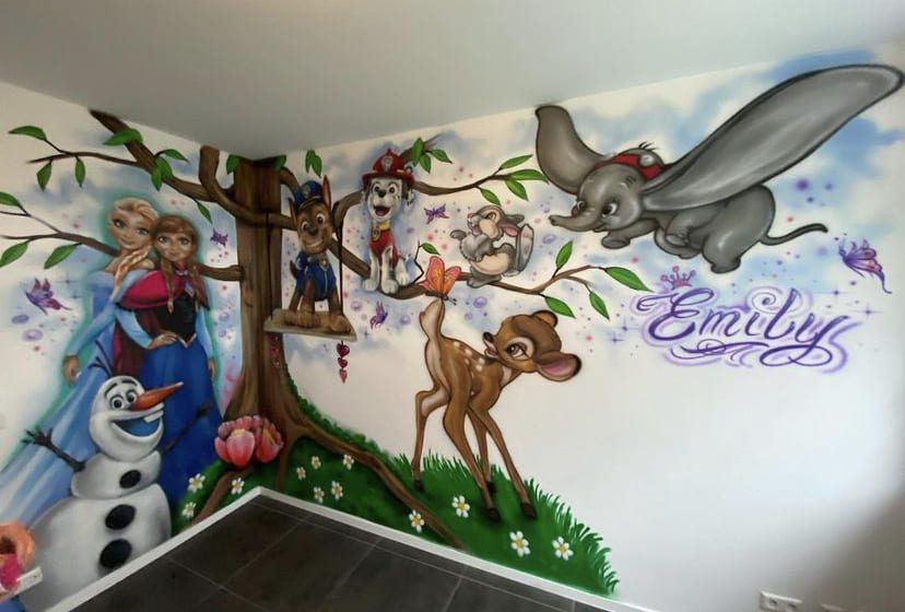 Ob fröhliches Wandgemälde, verspielte Motive oder detailreiche Traumwelten – unsere Graffiti Kinderzimmergestaltungen sind langlebig, wischfest und UV-stabil.